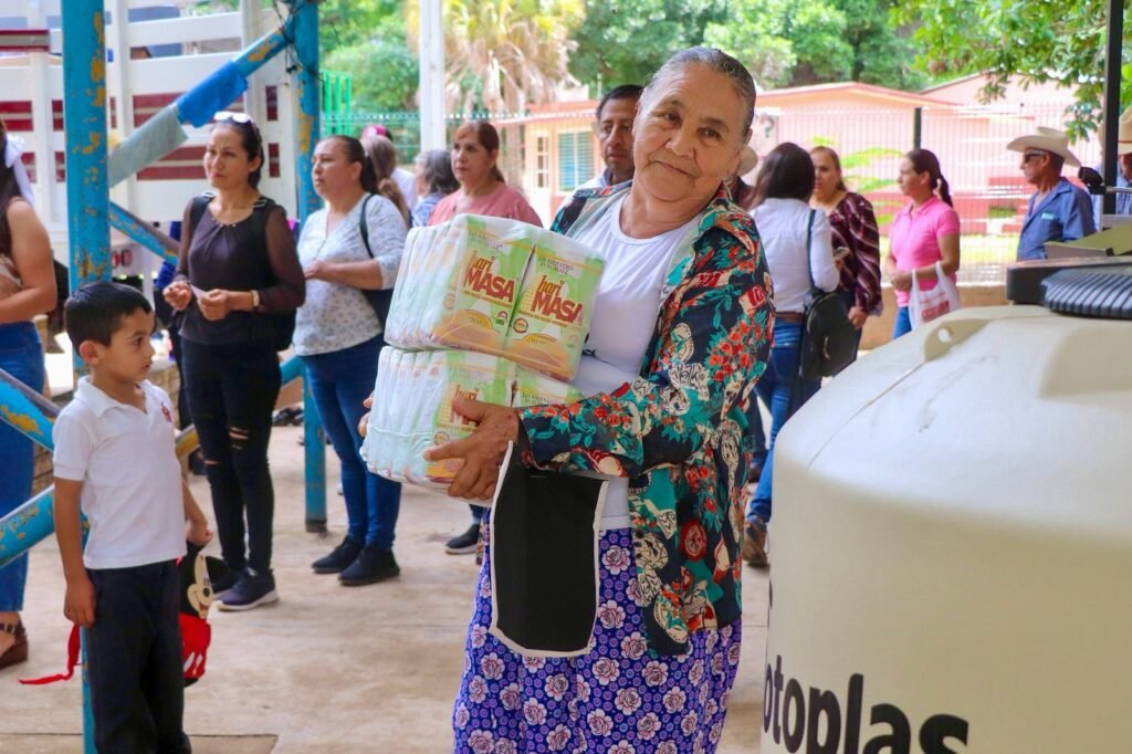 Las familias de esta comunidad, se vieron beneficiadas con el programa ‘Alimentando Familias’, que consiste en la entrega de harimasa mensualmente, tinacos para mitigar los problema de sequía y apoyos alimenticios que hizo entrega el DIF municipal.