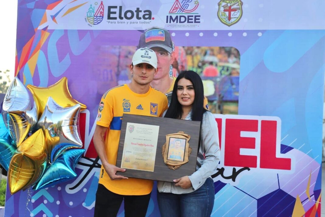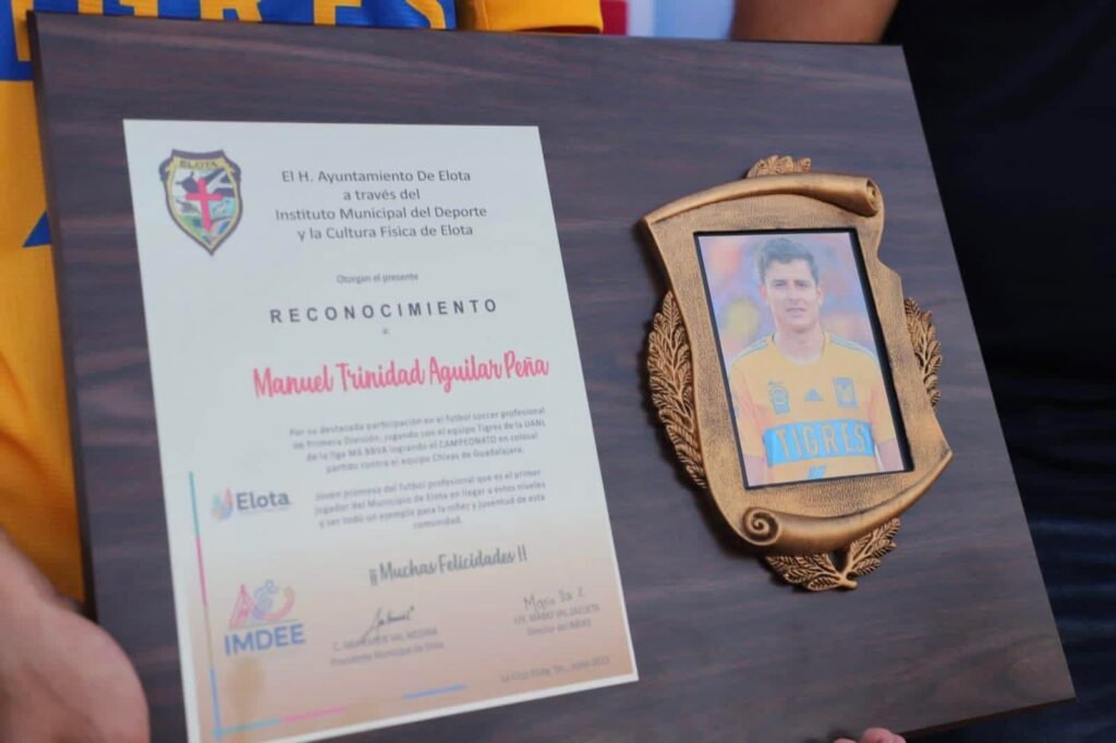 La Cruz, Elota, Sinaloa| Con la entrega de un reconocimiento y la realización de una caravana, el joven elotense Manuel Trinidad Aguilar Peña fue distinguido por formar parte del equipo de fútbol de Primera División Tigres de la Universidad Autónoma de Nuevo León (UANL), y ser campeón de la Liga MX.