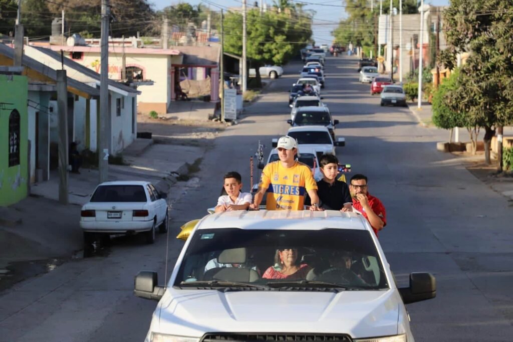 Con una caravana, la alcaldesa Ana Karen Val y la ciudadanía celebraron al jugador elotense del equipo de fútbol Tigres de la Universidad Autónoma de Nuevo León