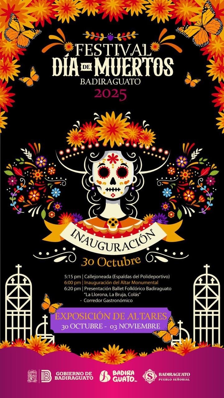 Cabe mencionar que el Festival de Día de Muertos Badiraguato 2025, tendrá lugar el zócalo de la alcaldía central, en la Plaza Constitución a partir de las 17:15 horas.